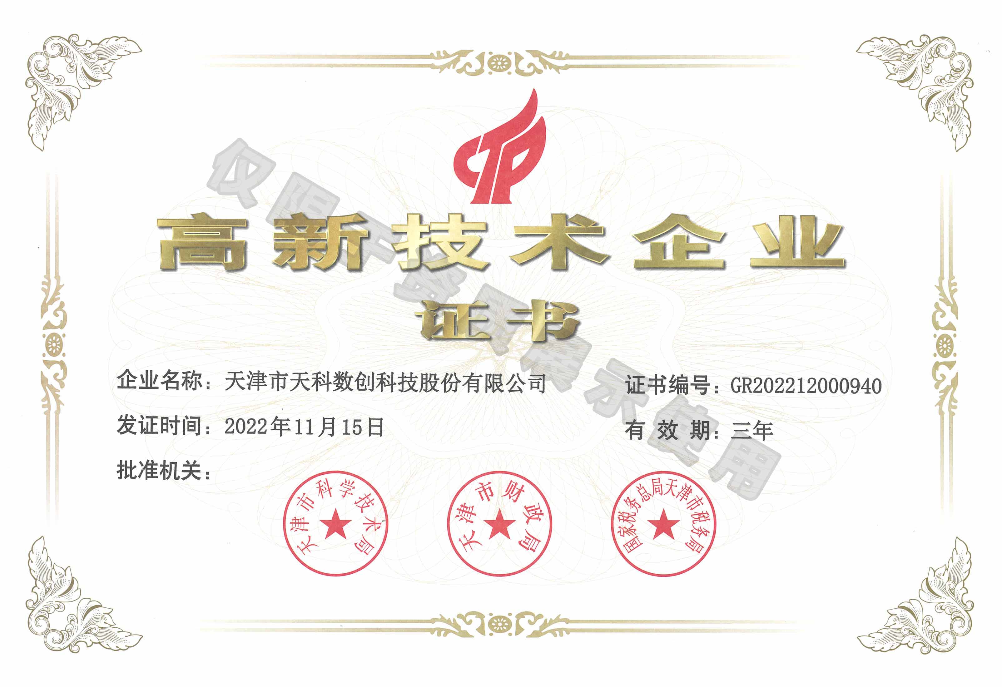 • 高新技術企業證書